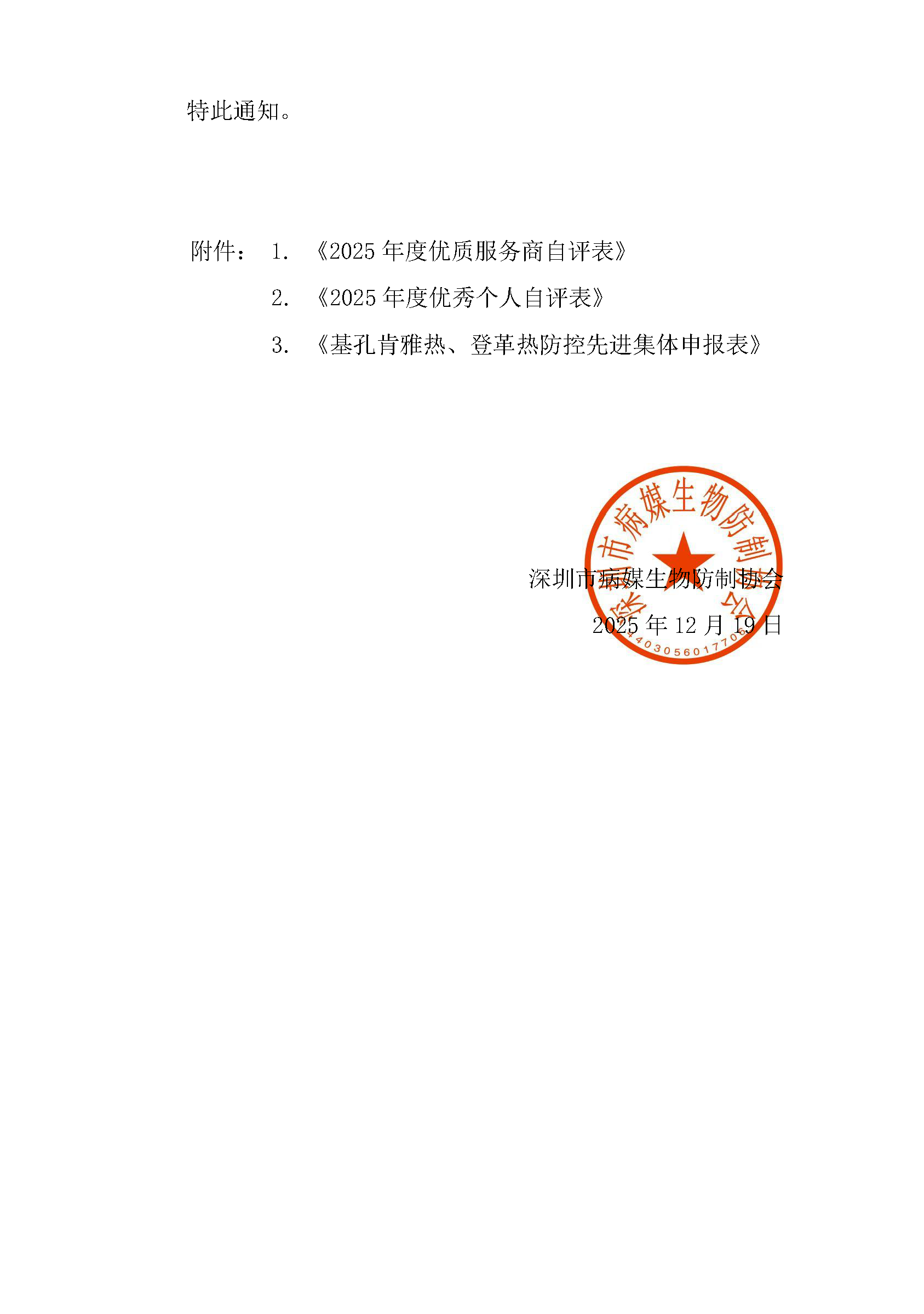 关于2025 年度优质服务商,优秀个人和基孔肯雅热、登革热防控先进集体名单公示